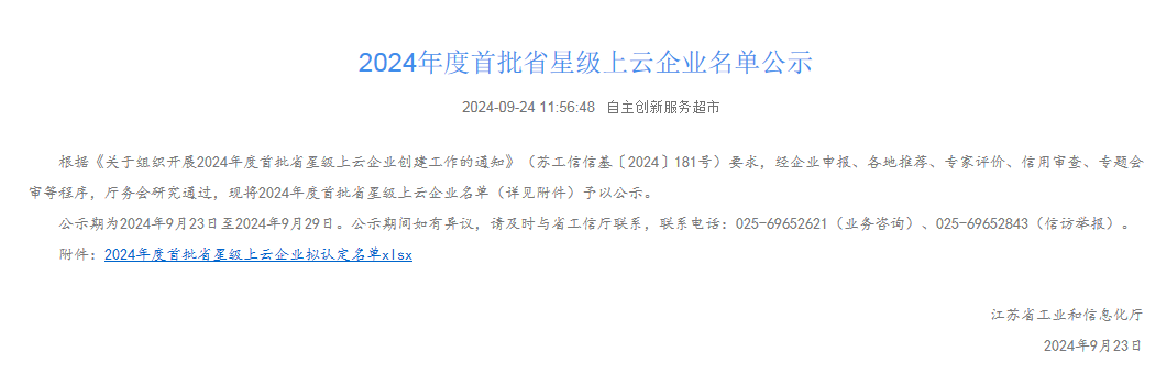 2024年9月,江蘇省工業和信息化廳公布了2024年度首批省星級上云企業名單,江蘇長順集團旗下4家公司榮耀登榜。其中,賽勝(常熟)聲學科技有限公司、江蘇長能節能新材料科技有限公司、江蘇賽勝新材料科技有限公司獲認定為三星級上云企業,江蘇金智達新材料有限公司獲認定為四星級上云企業。