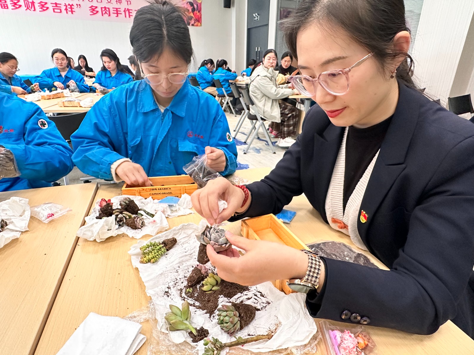 春風拂面,暖意融融,在第115個國際勞動婦女節來臨之際,長順集團以一場別具匠心的多肉手作活動,向每一位在職場中綻放光芒的女性致敬。本次活動以“多福多財多吉祥”為主題,于2025年3月7日下午,在長順集團502會議室隆重舉行。通過手作種植的形式,讓女神們在忙碌的工作之余,感受生活的詩意與美好,彰顯企業對女神們的關愛與尊重。