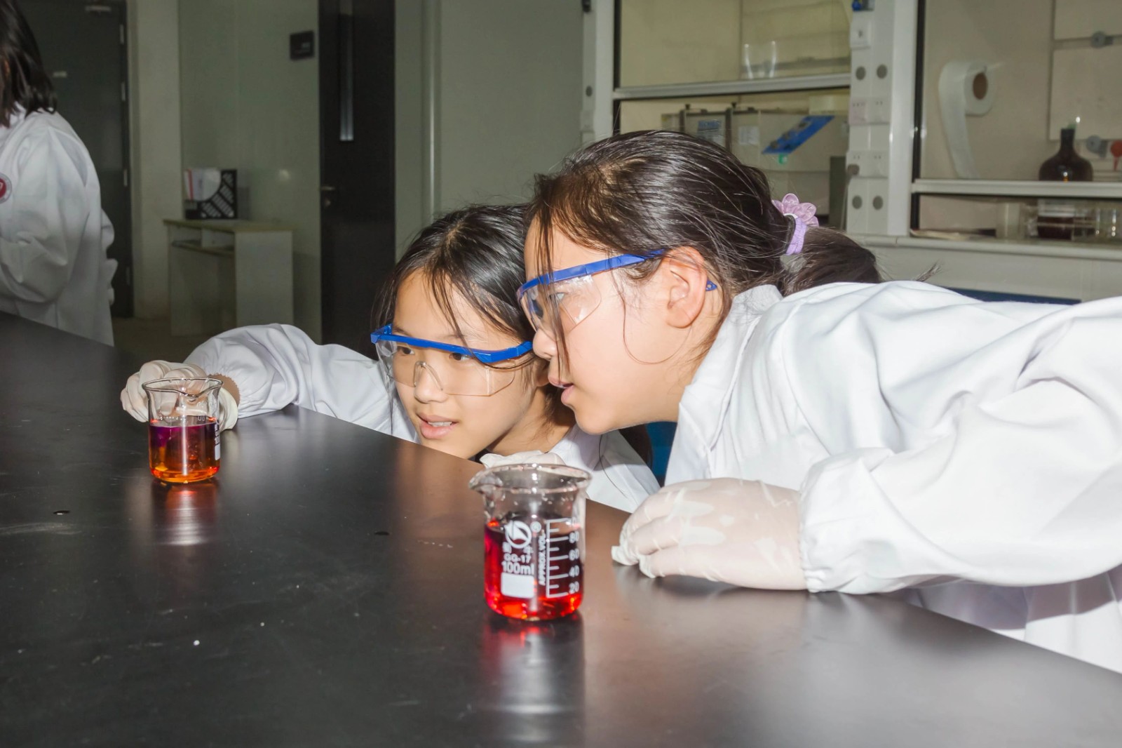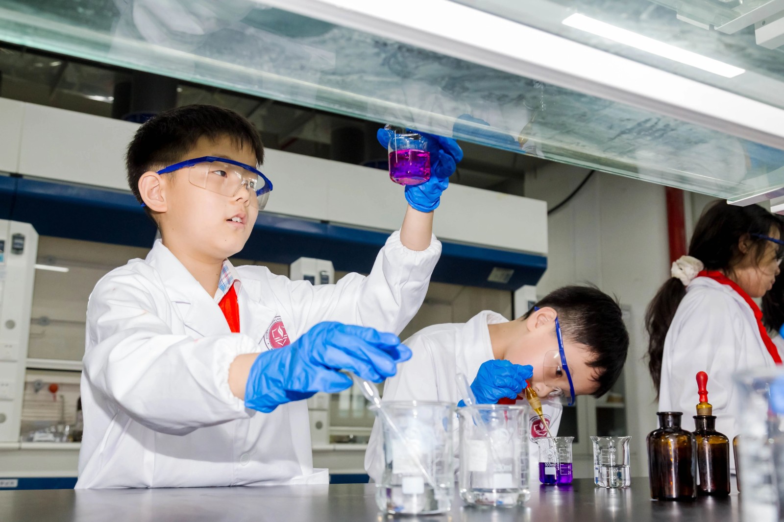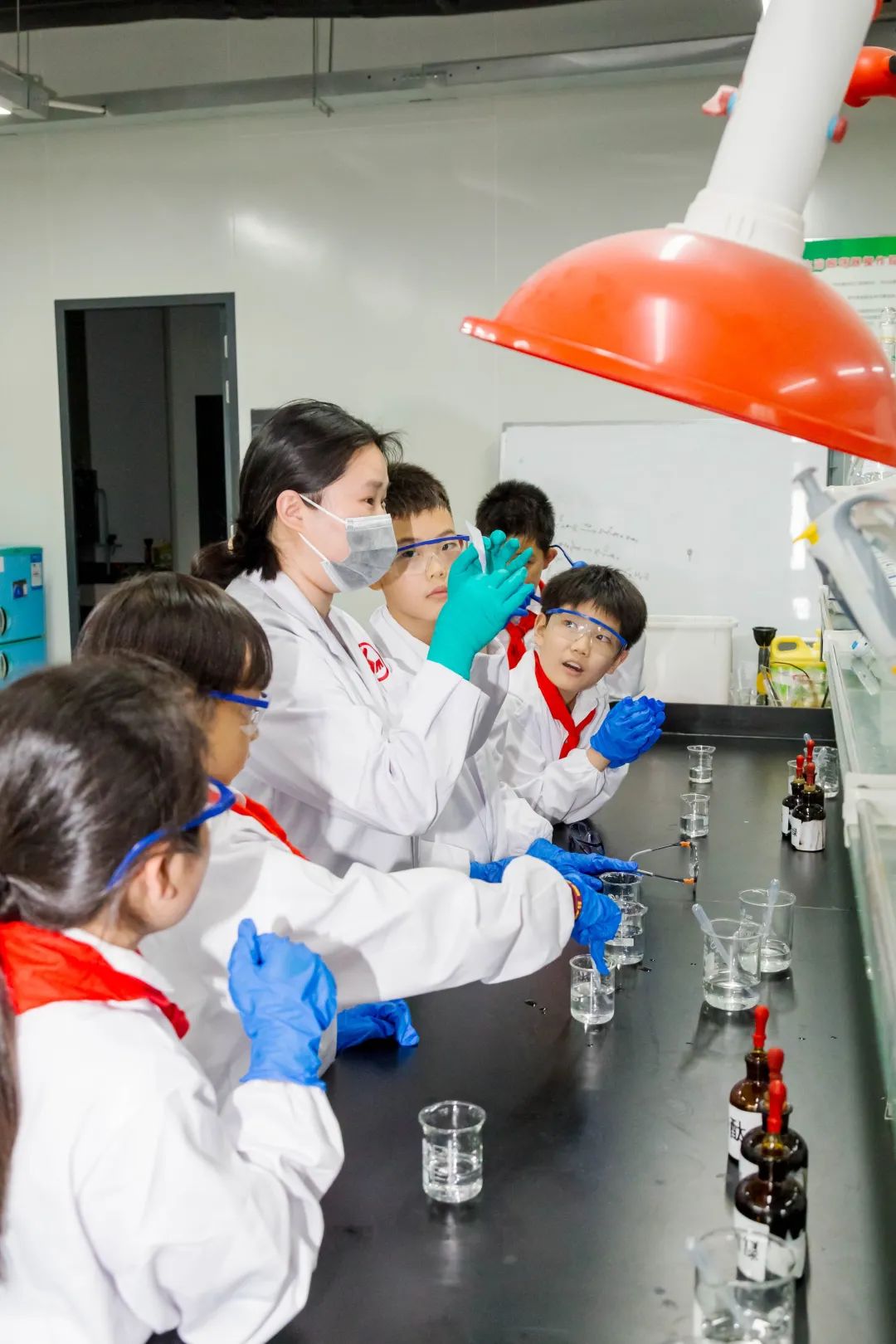 課程聚焦化學基礎與材料科學,設置“酸堿指示劑變色實驗”與“高分子發泡實驗”兩大實踐模塊。在技術老師指導下,學生學生通過溴甲酚綠、酚酞等試劑的酸堿反應實驗,掌握pH值變化規律,并親手調制個性化彩色溶液;